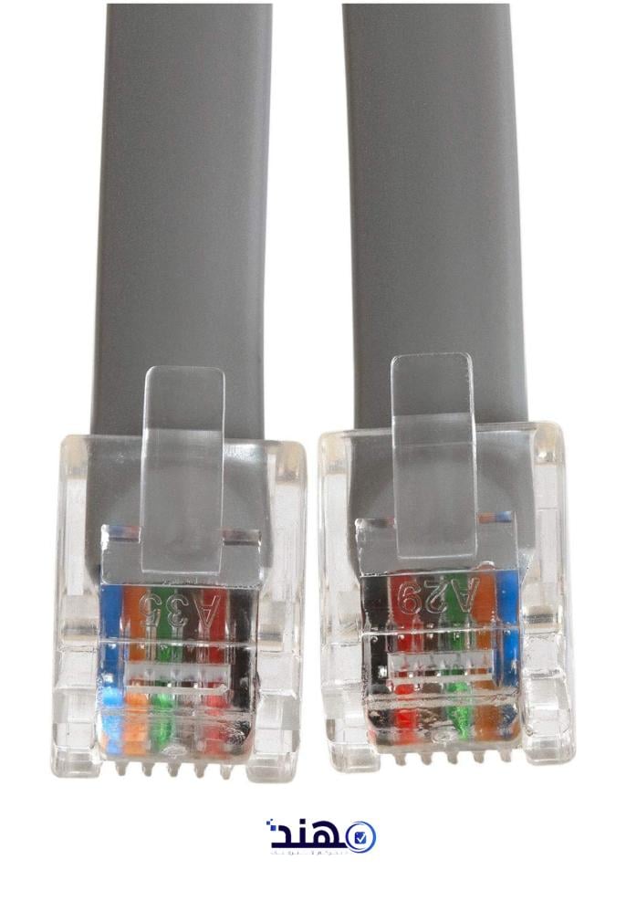 ، موصل مع كيبل قابس RJ12 6P6C للهاتف الارضي - 1.5 متر ، رمادي، لمودم كابل إيثرنت عالي السرعة RJ45 شبكة LAN كابل راوتر كابلات الكمبيوتر
