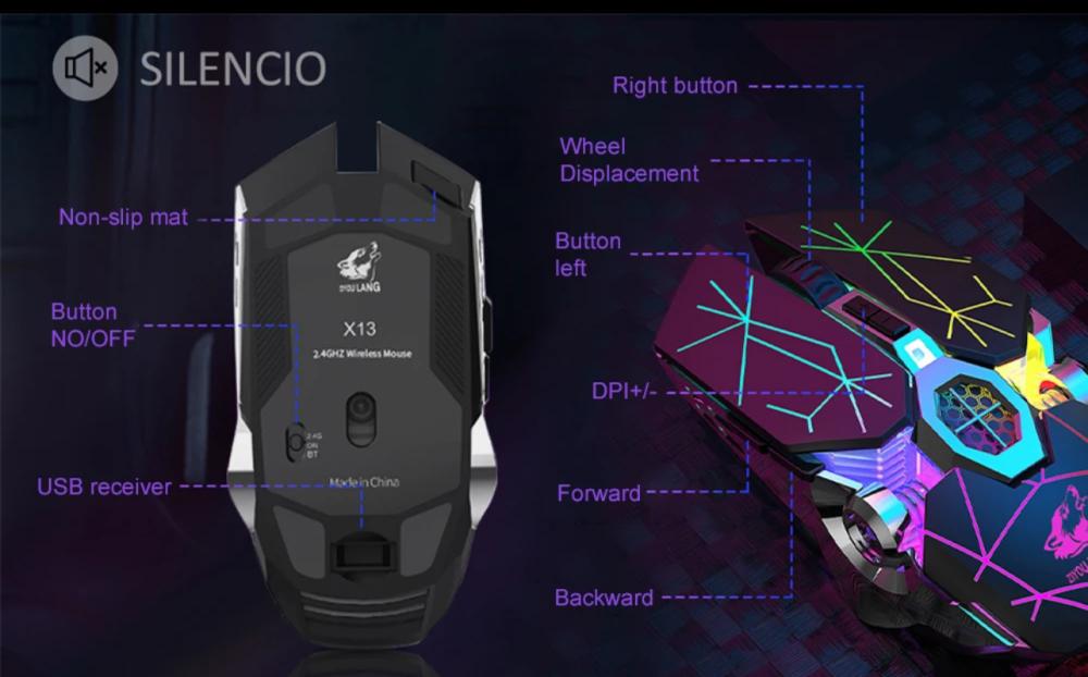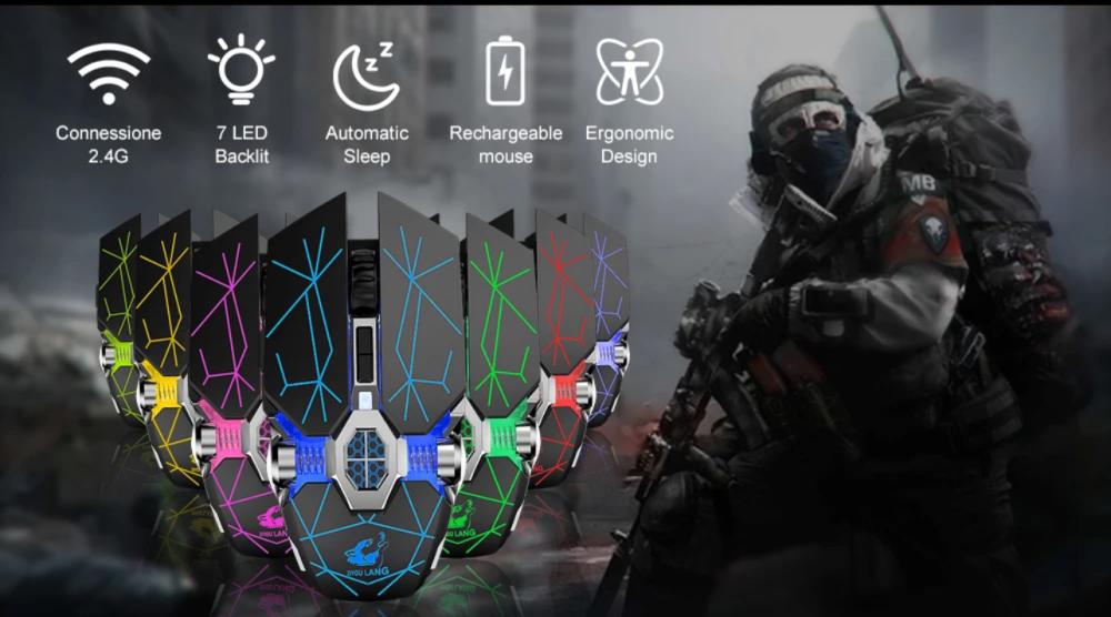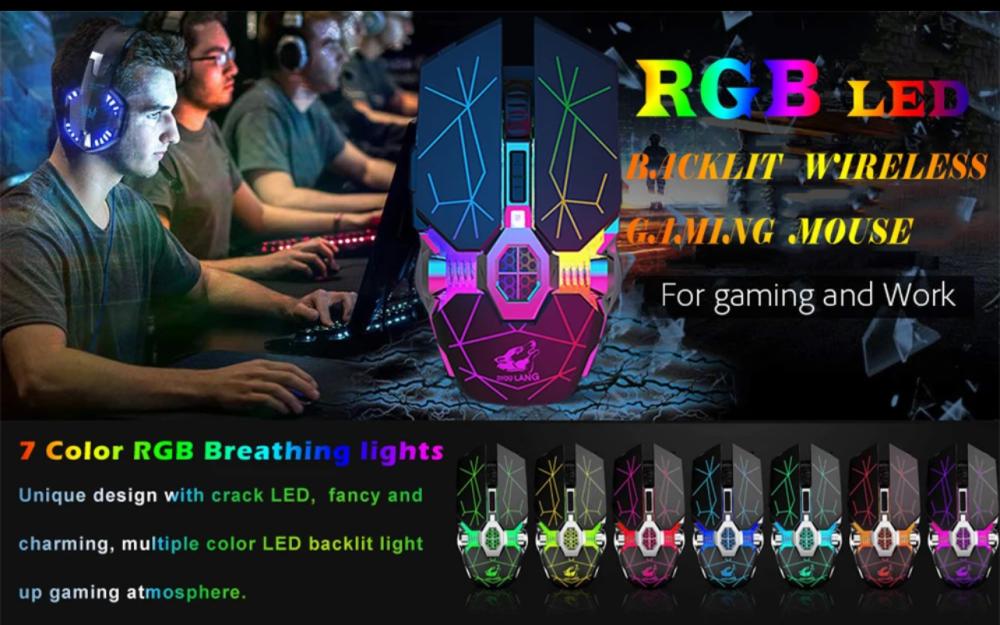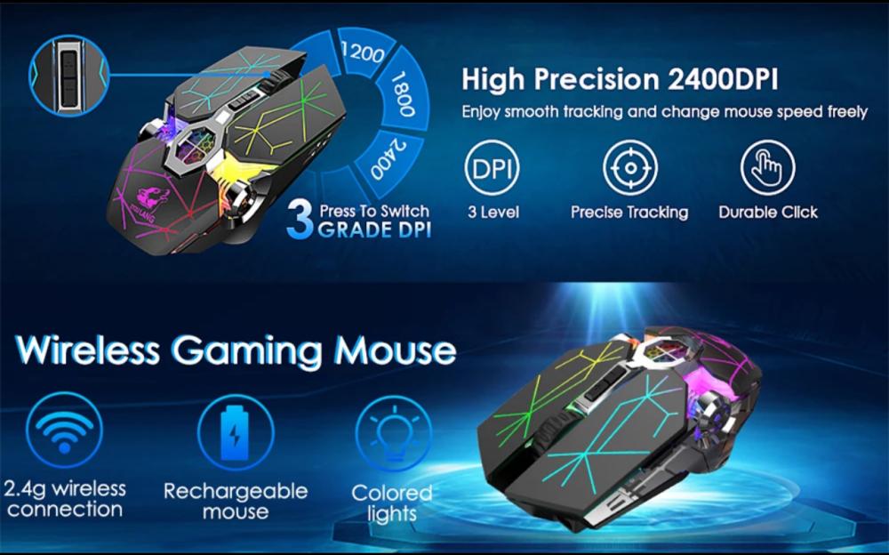 ماوس ألعاب لاسلكي قابل لإعادة الشحن ، أضواء RGB ، DPI قابل للتعديل ، هادئ ، نقرة آلية ، نوم ، مريح للألعاب أو العمل